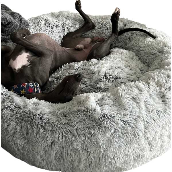 The GIANT 120cm diameter donut bed is the ultimate in comfort and space for large breed dogs. With its generous size, even the larger breeds can stretch out, curl up, and truly relax without feeling cramped. It's incredibly soft and fluffy, offering a plush, cosy haven that your dog will love sinking into. Perfect for large breeds such as Greyhounds, Lurchers, Labradors or German Shepherds etc. This bed provides the support they need while surrounding them with warmth and security. Whether it's nap time or bedtime, the GIANT donut bed ensures your large dog enjoys restful, luxurious sleep every time.