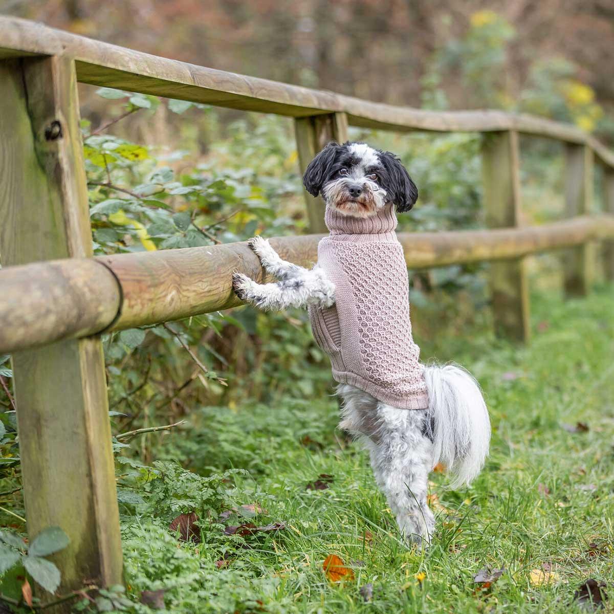 To finish the look, a long, wide collar provides extra warmth around the neck while giving the sweater its signature stylish silhouette. Fold it, scrunch it, or let it stand tall—your dog can wear it their way.