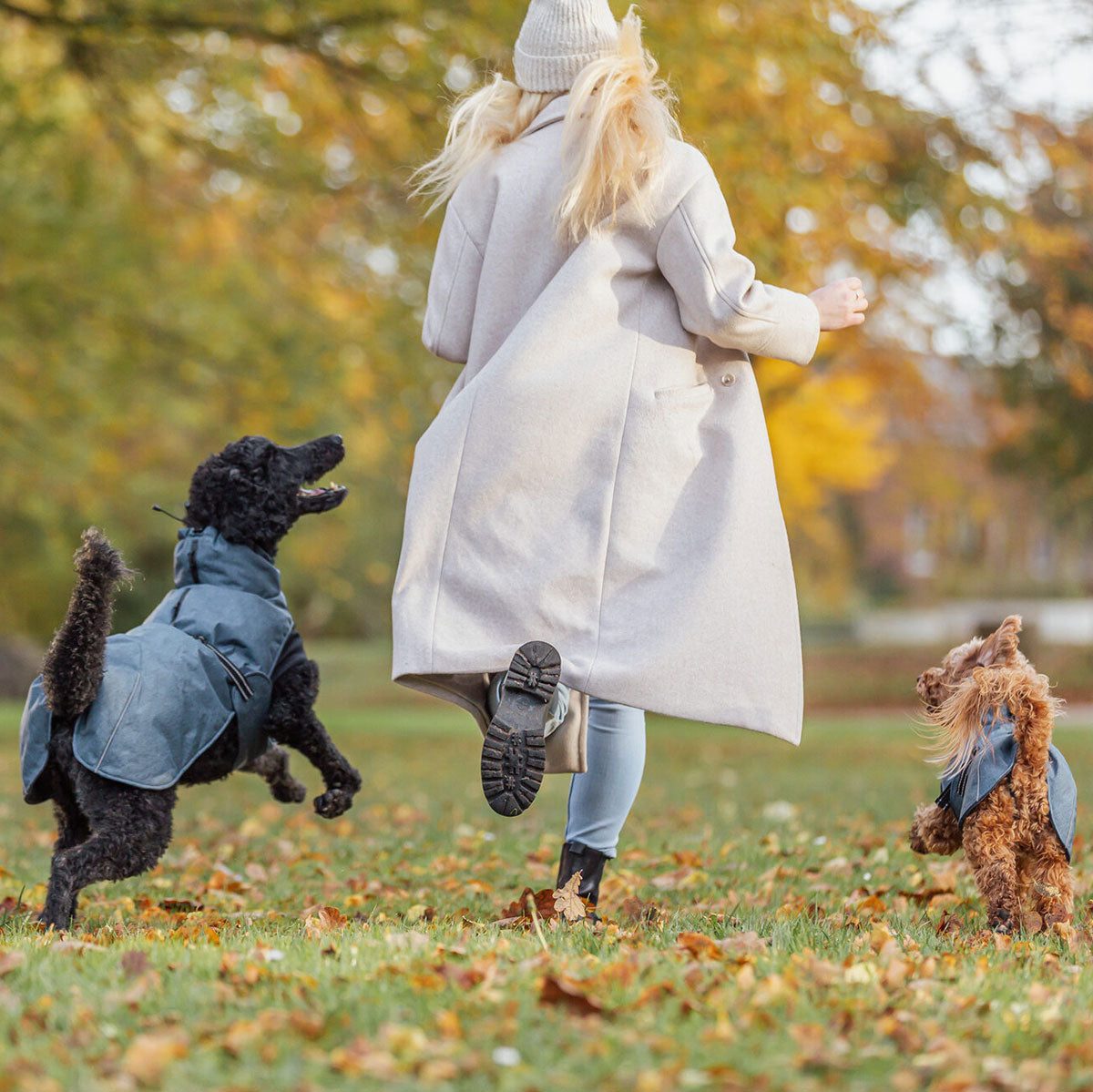 - The coat has two waterproof zips for use with a harness or a lead. We recommend using with our 2 strap harness